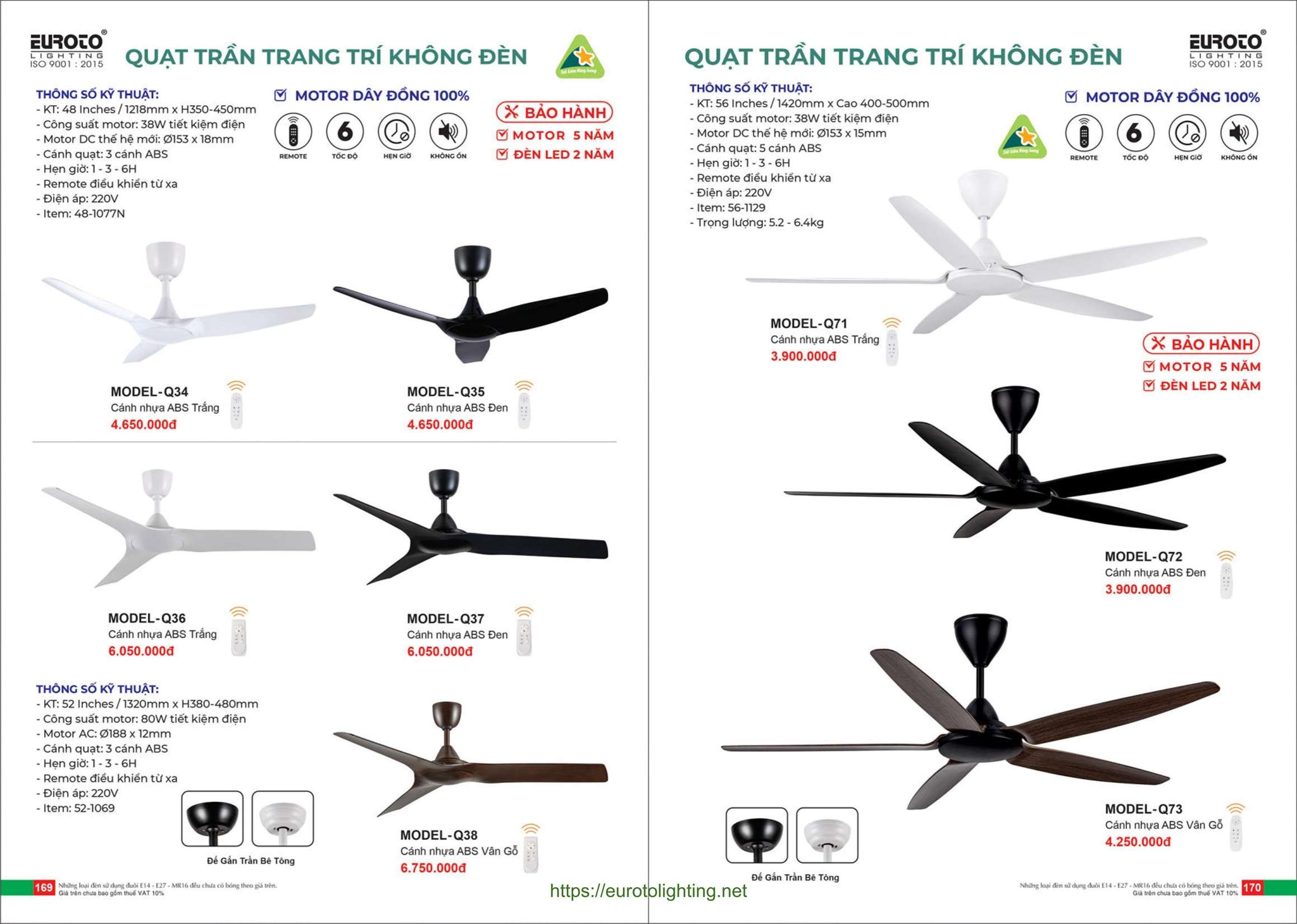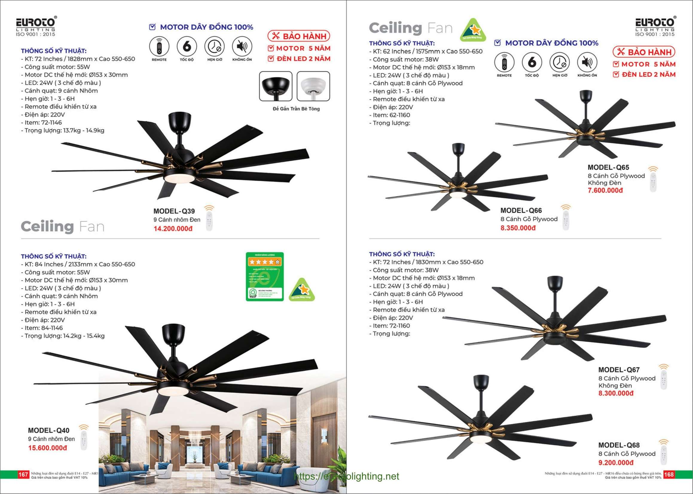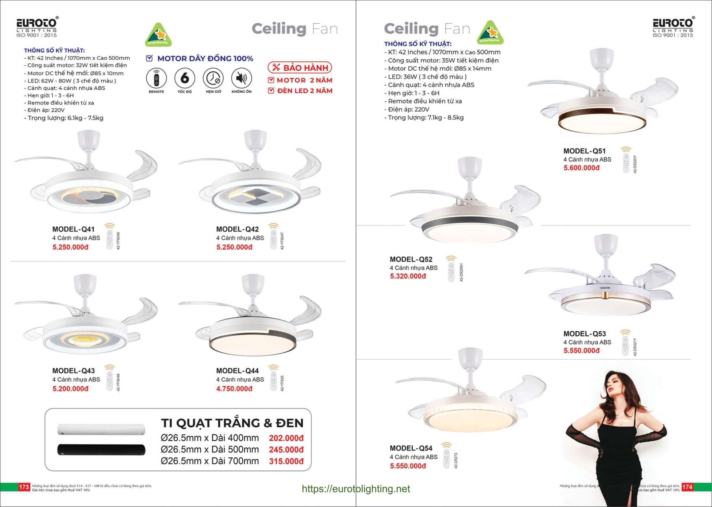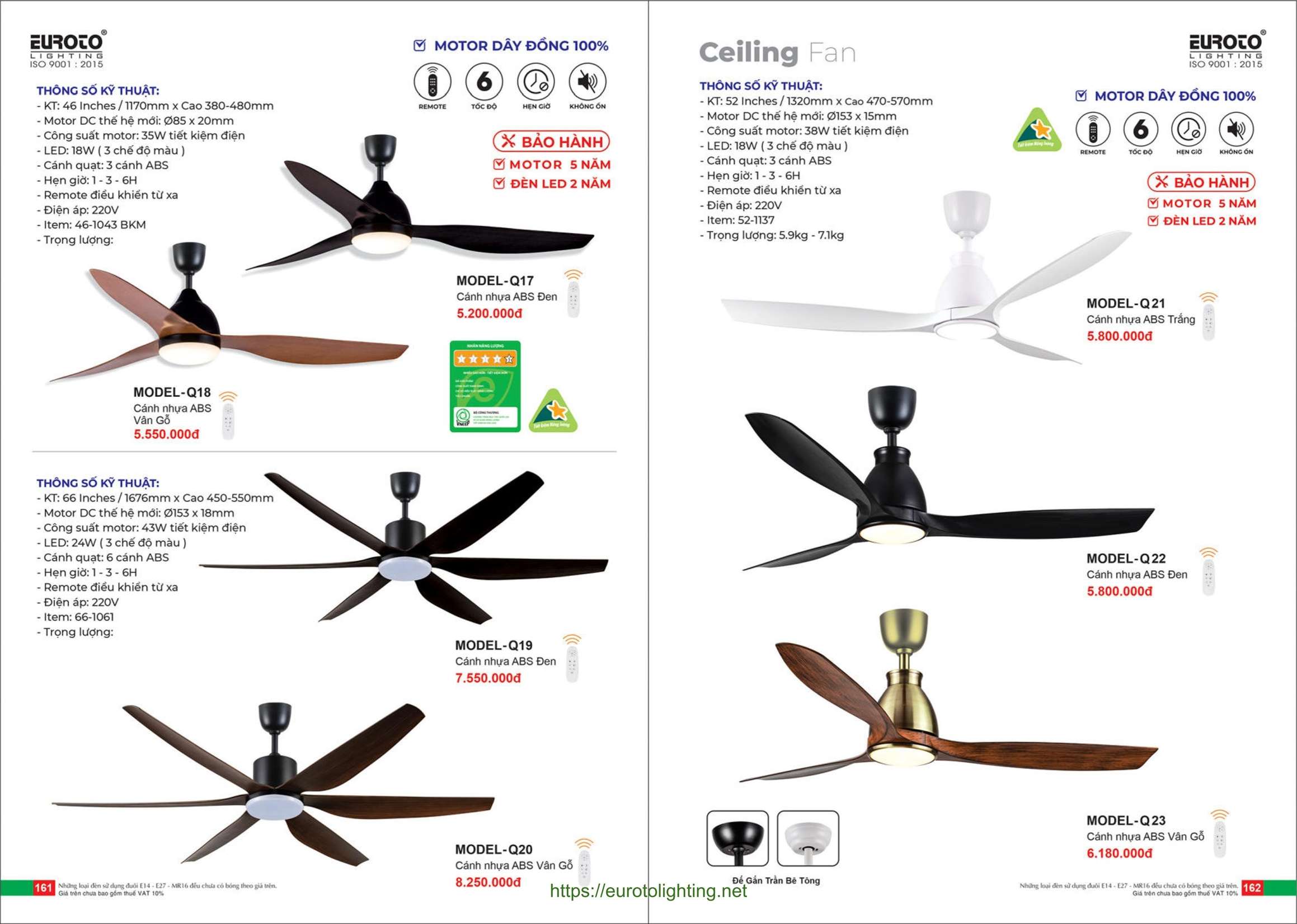 Đèn quạt trần Euroto