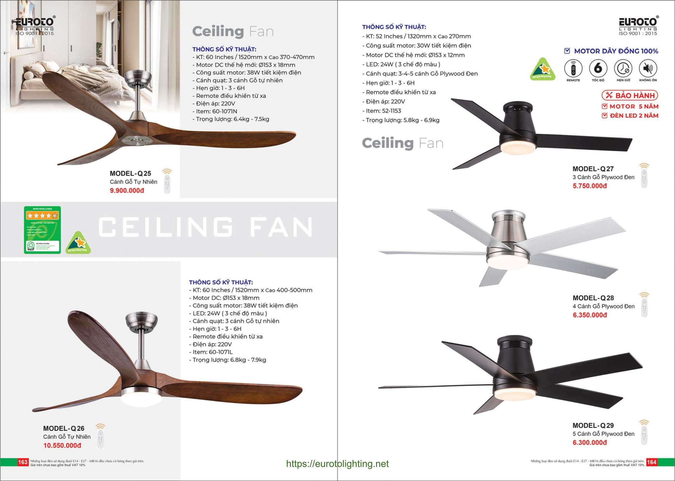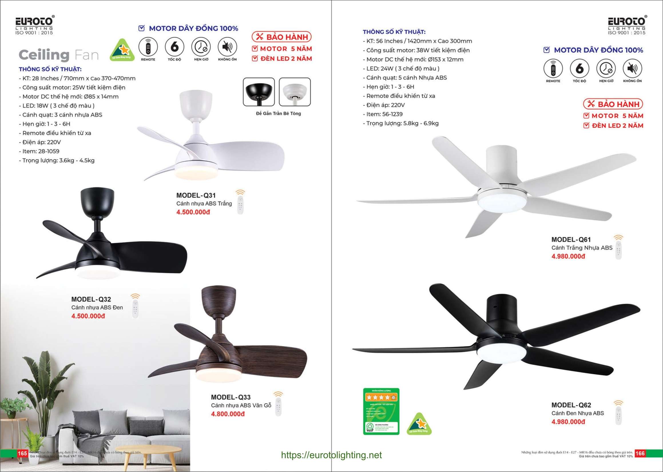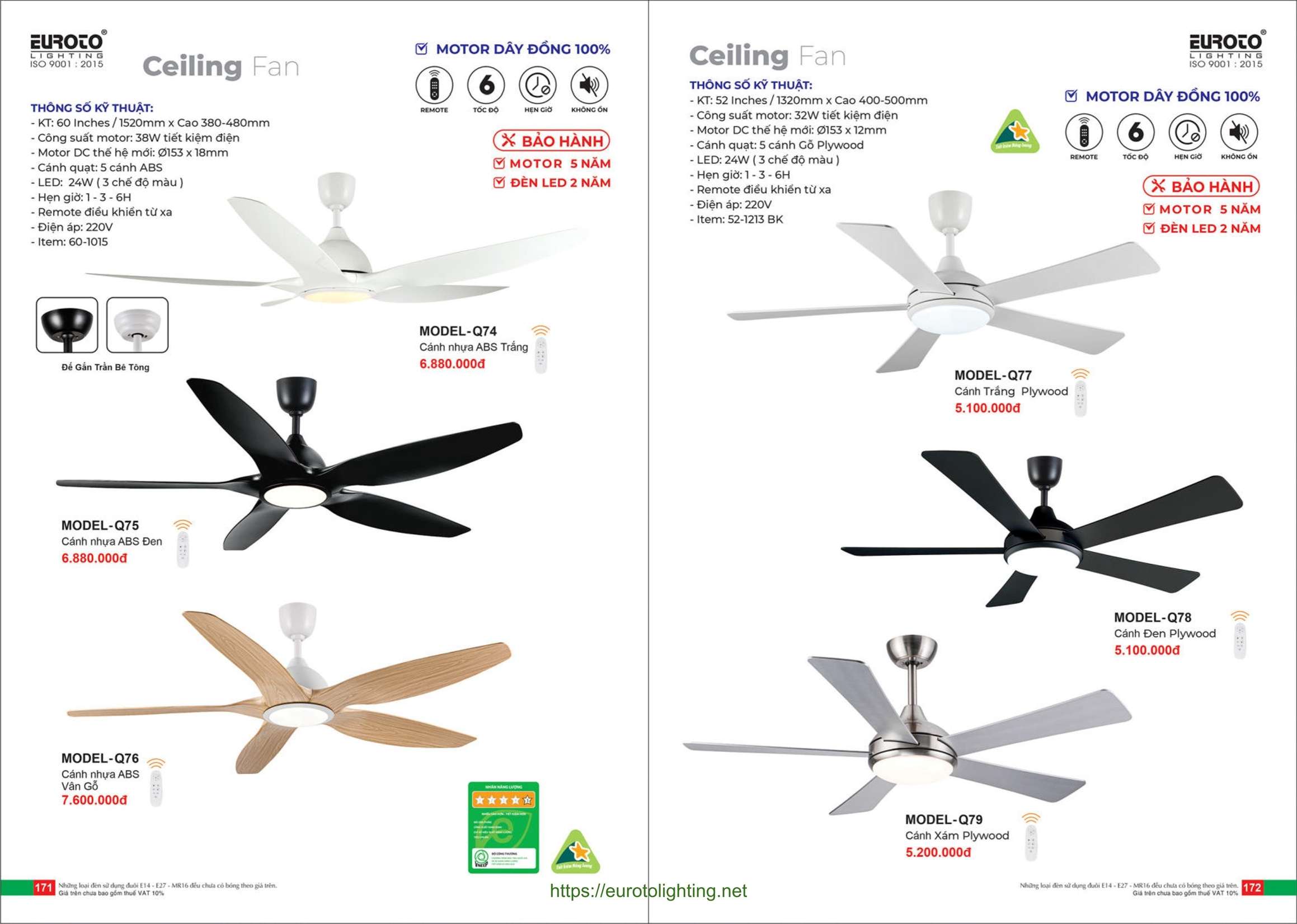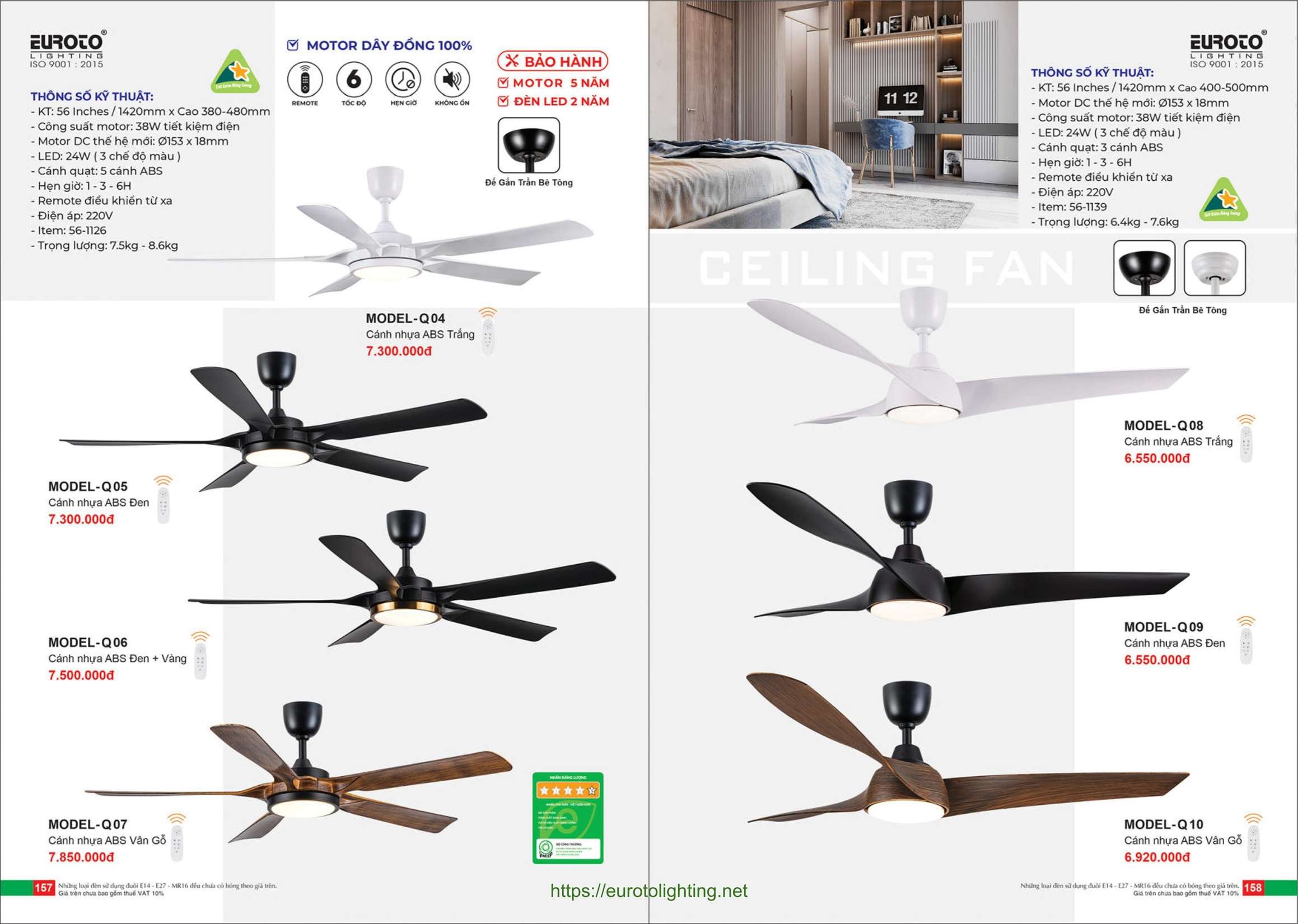 Đèn quạt trần Euroto