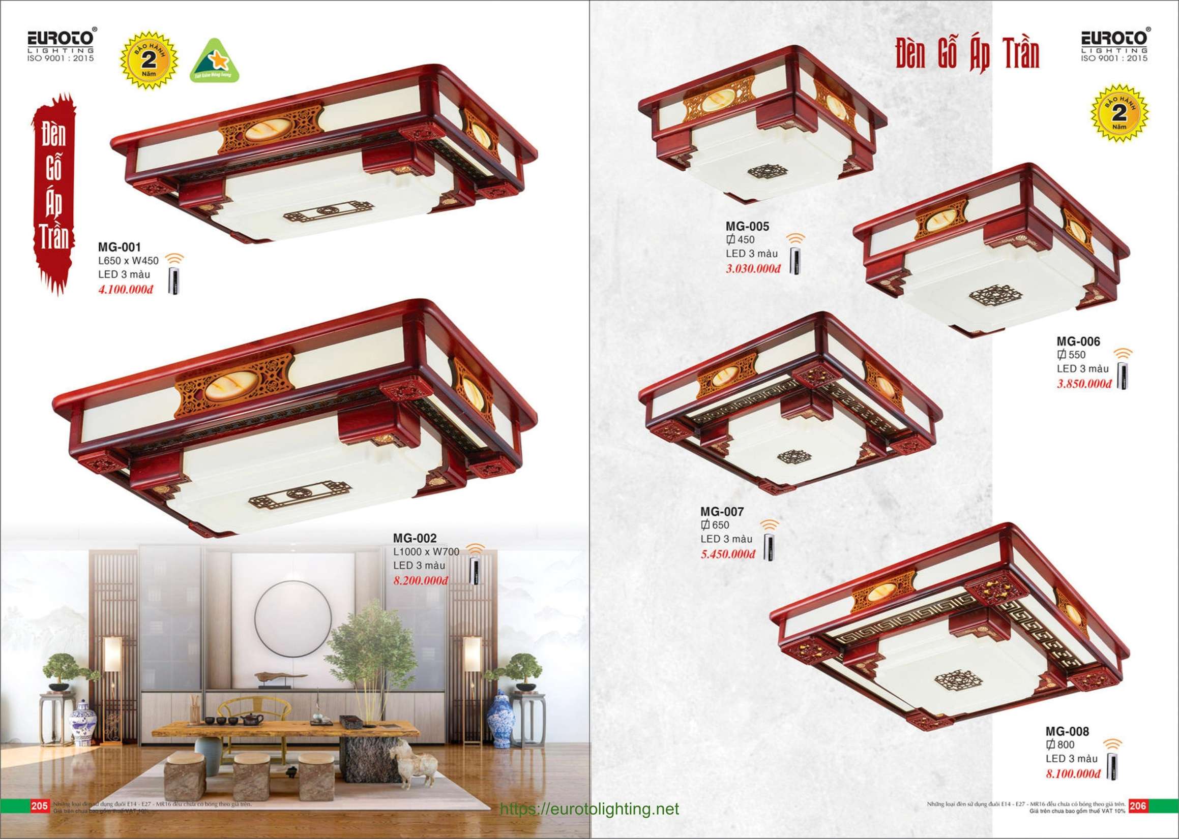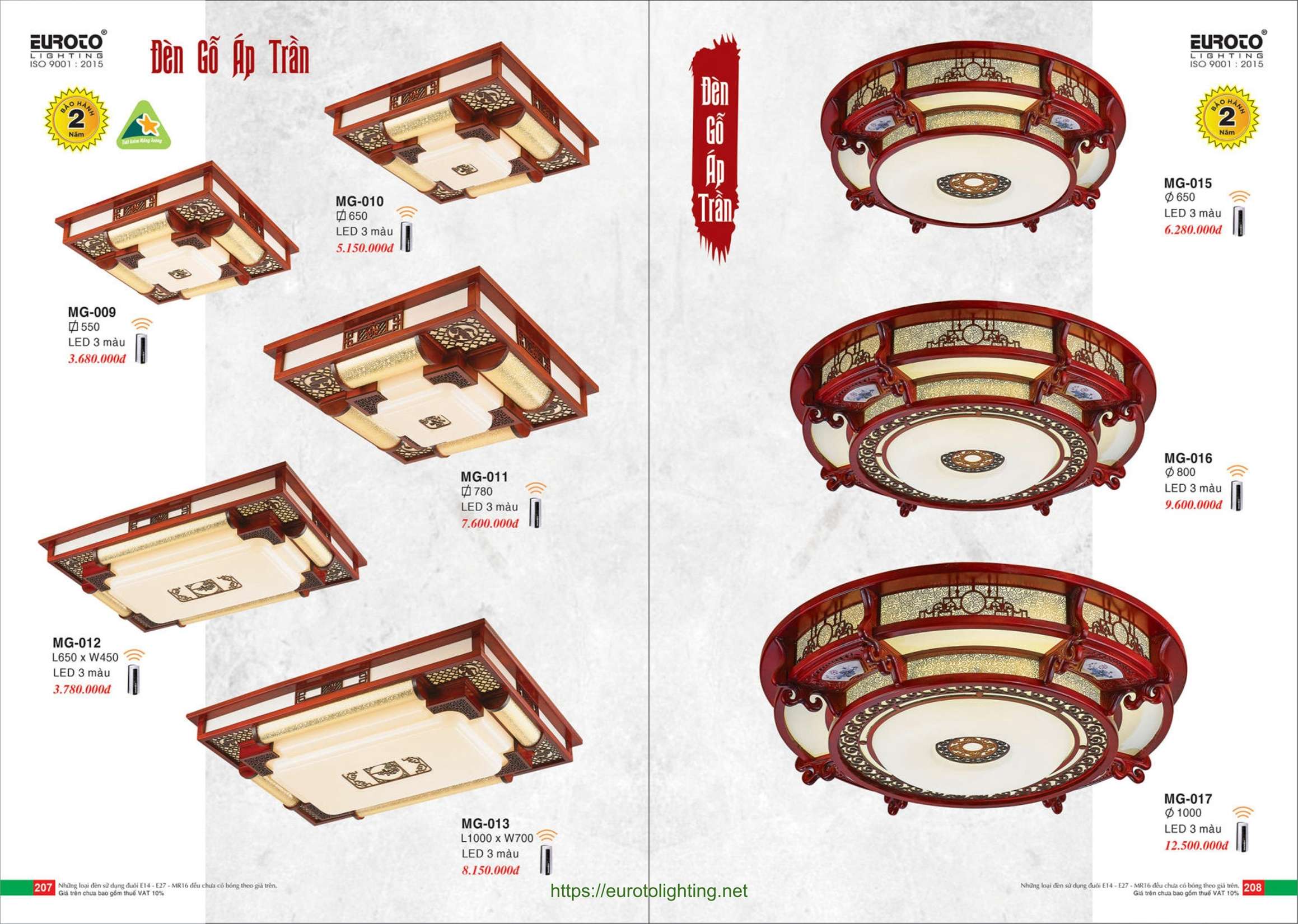 Đèn áp trần màu gỗ Euroto