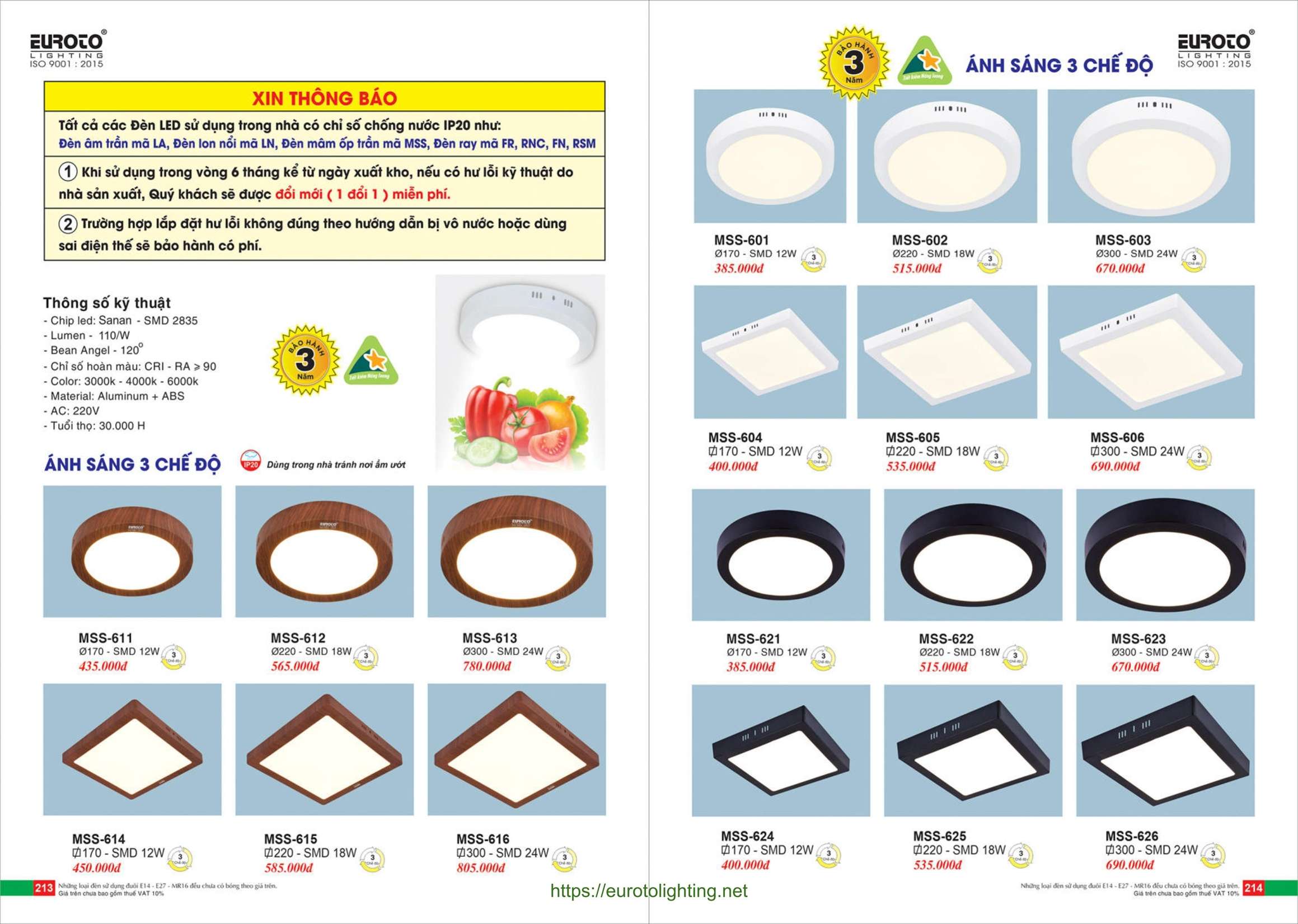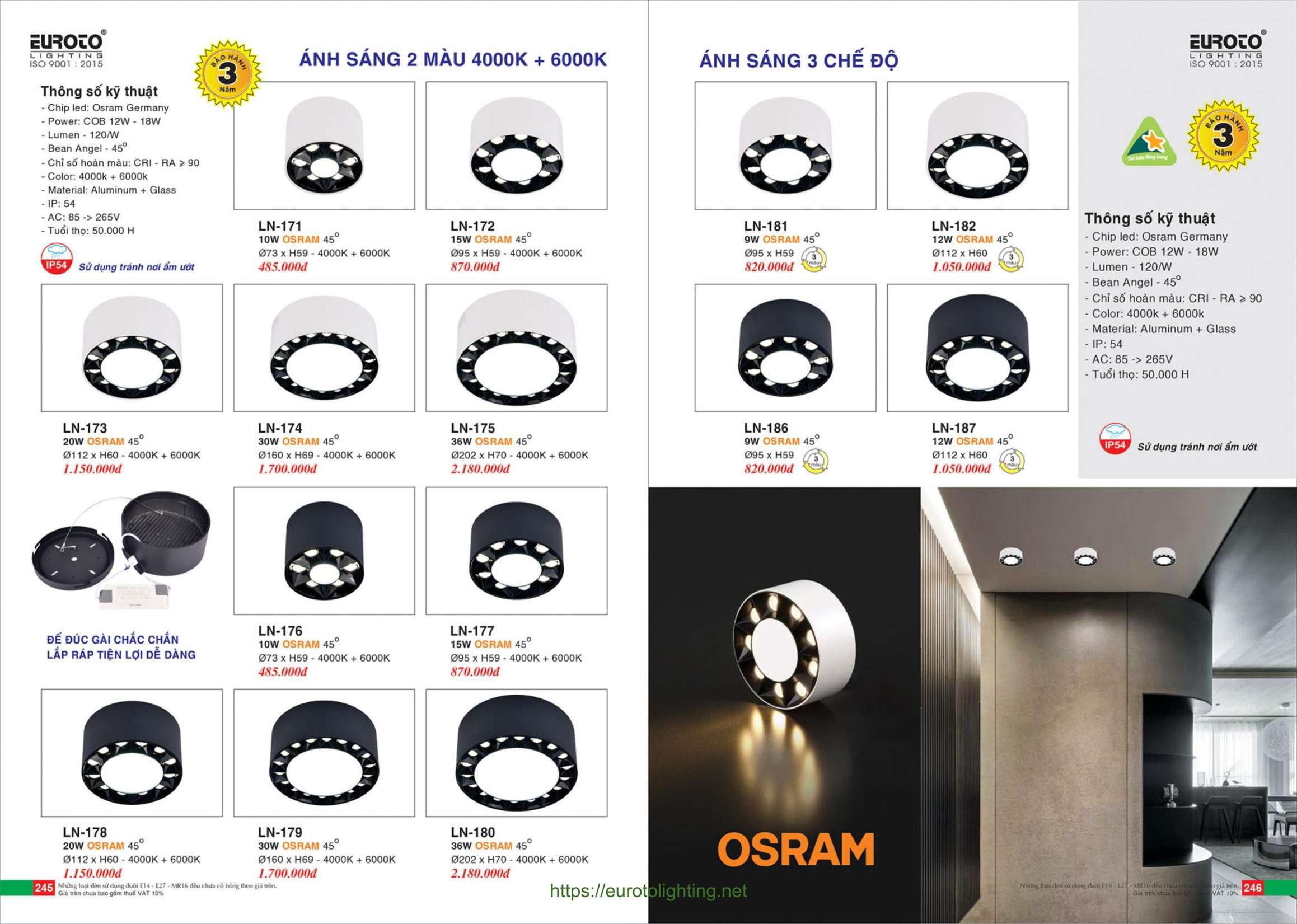 Đèn áp trần LED Euroto