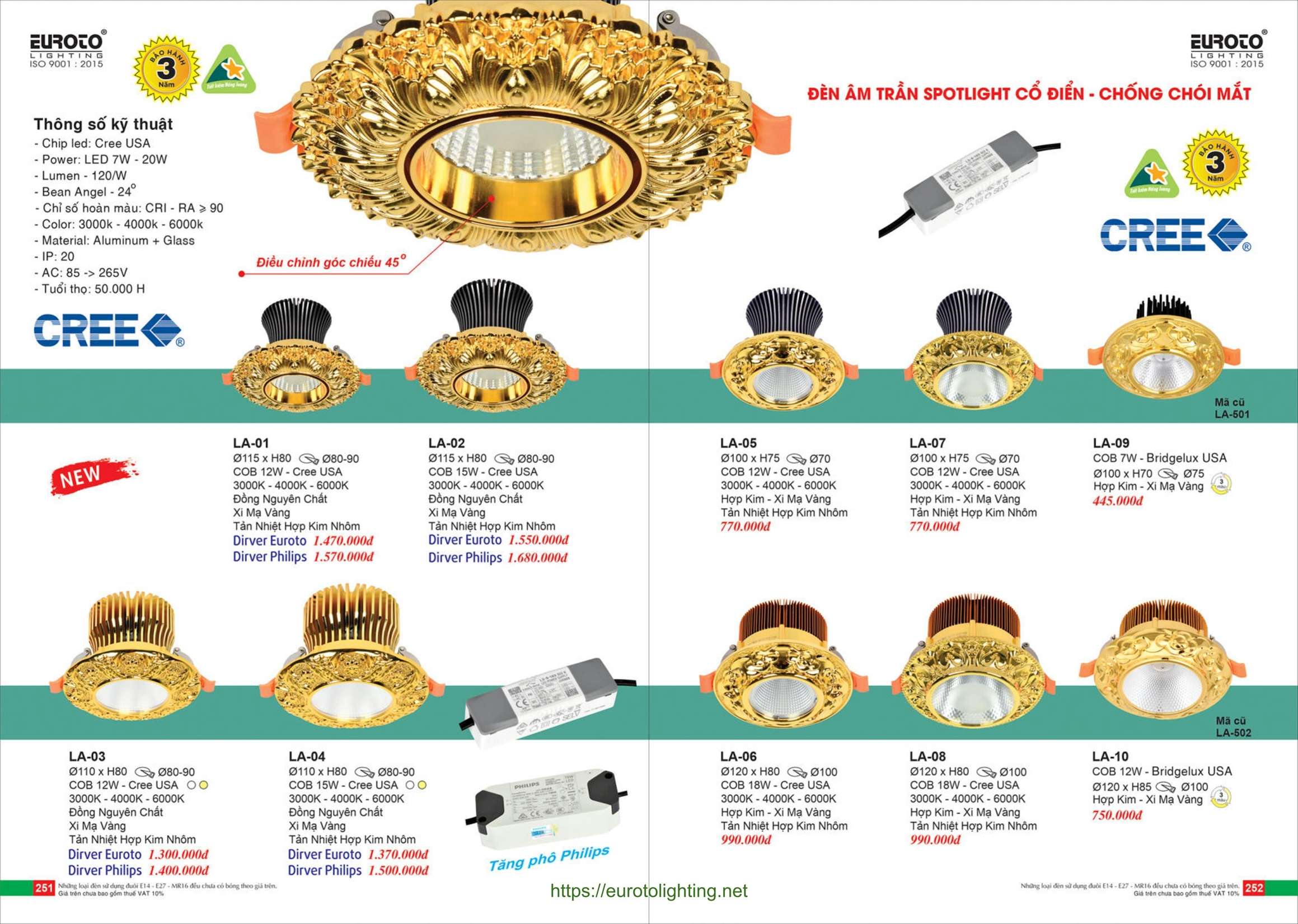 Đèn âm trần cổ điển Euroto