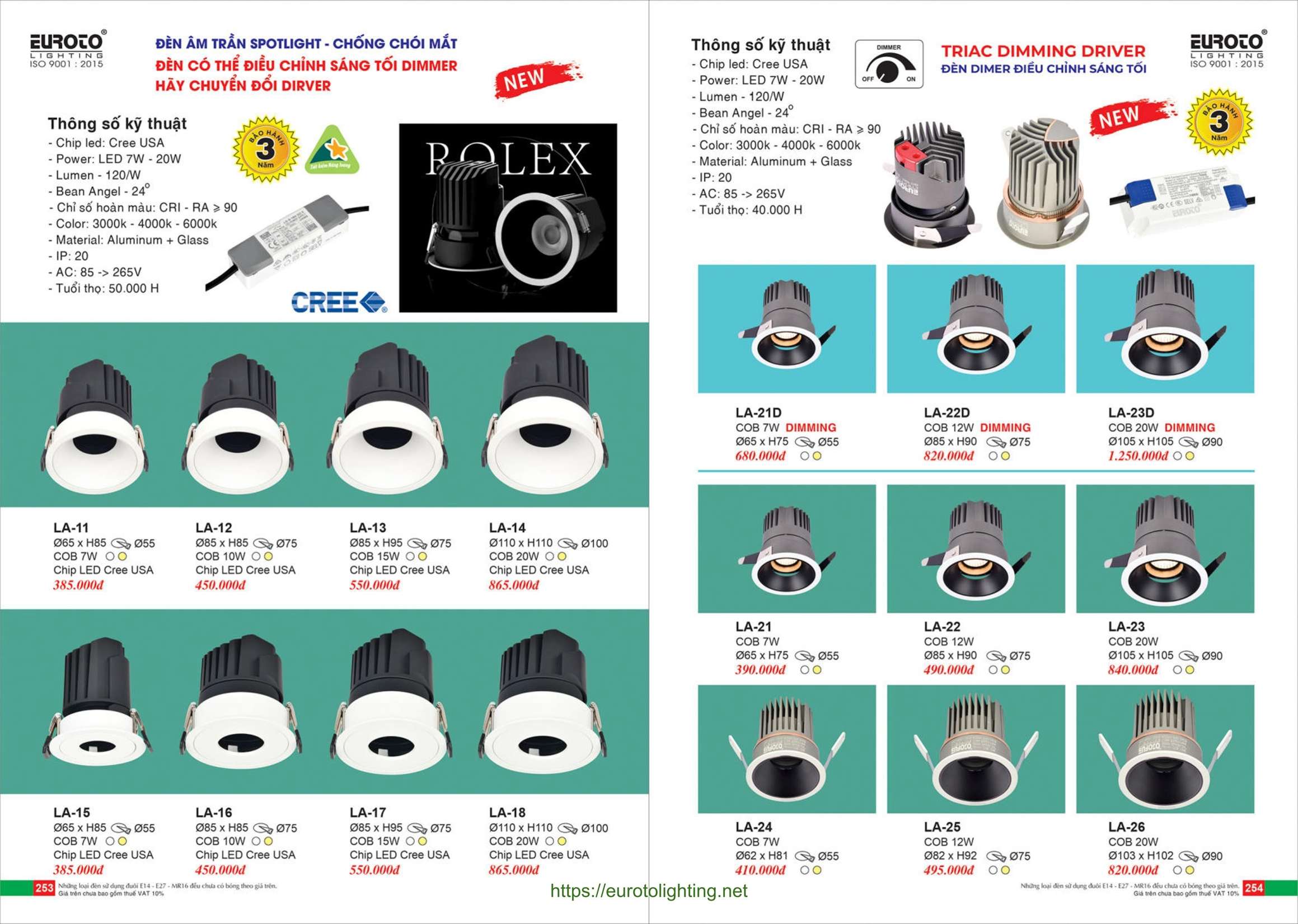 Đèn âm trần dimmer Euroto