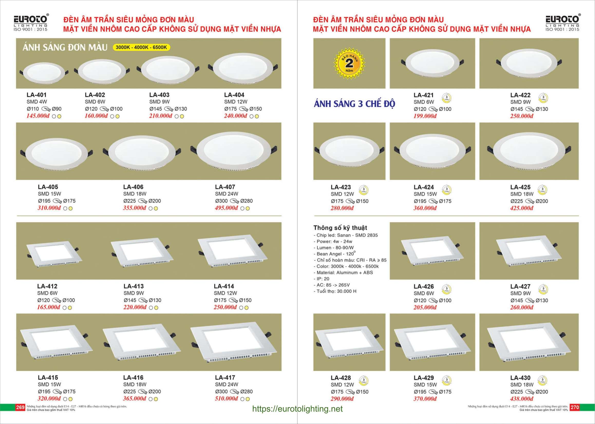 Đèn âm trần LED Euroto