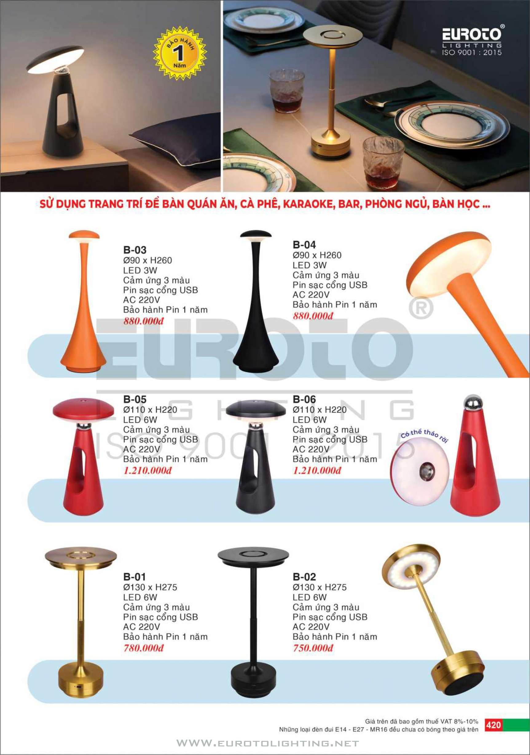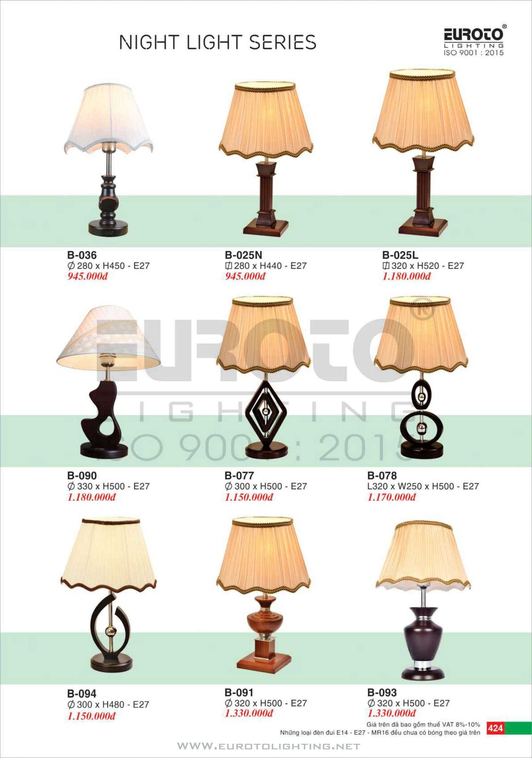 Catalogue đèn bàn Euroto