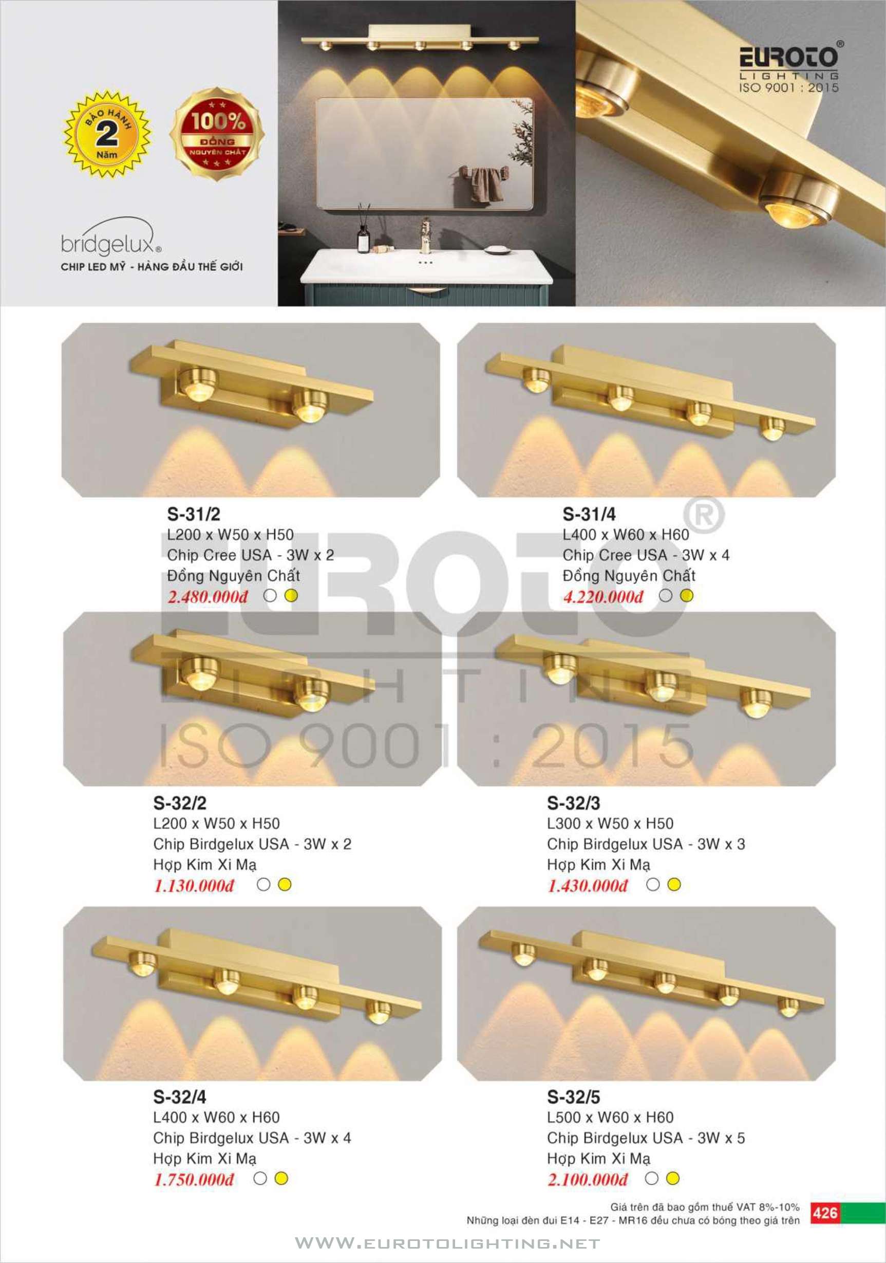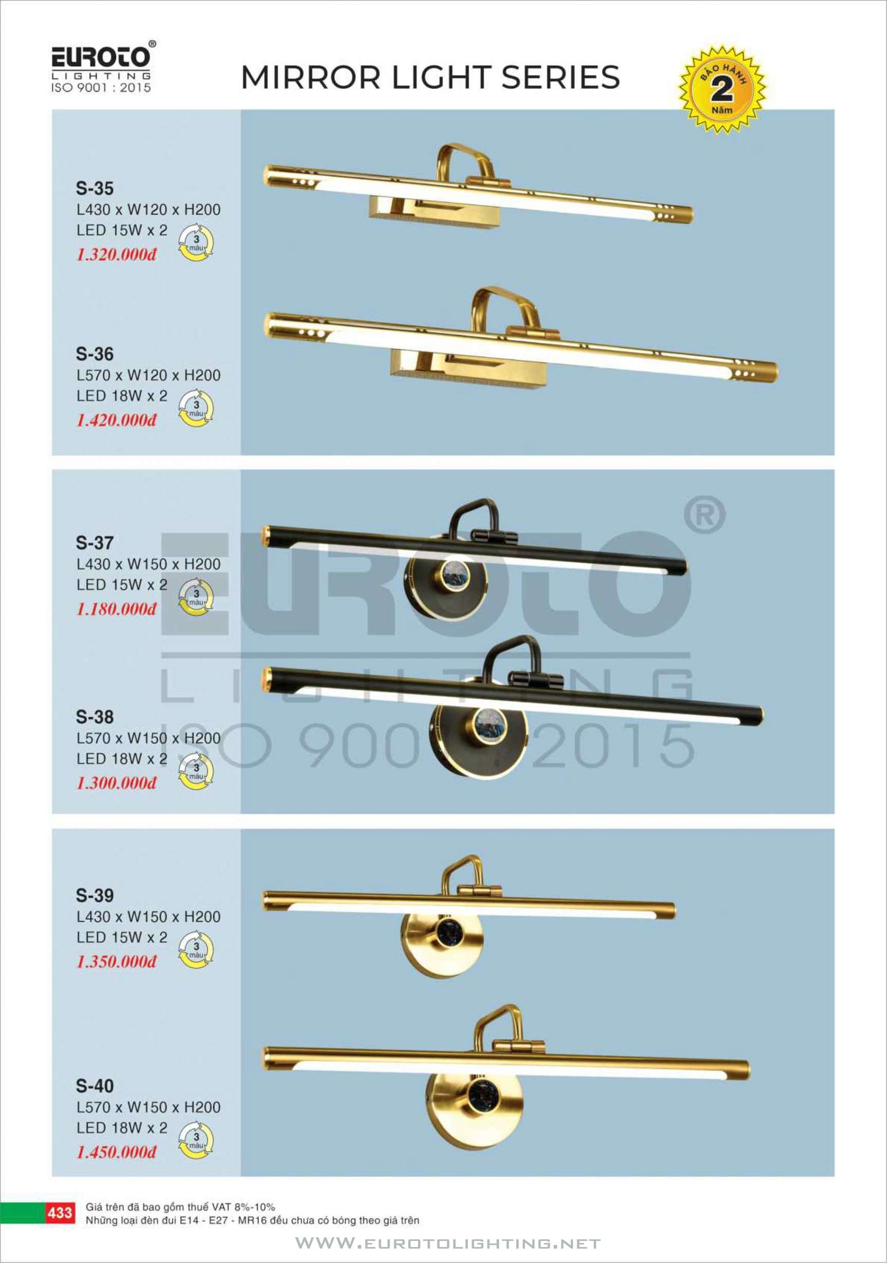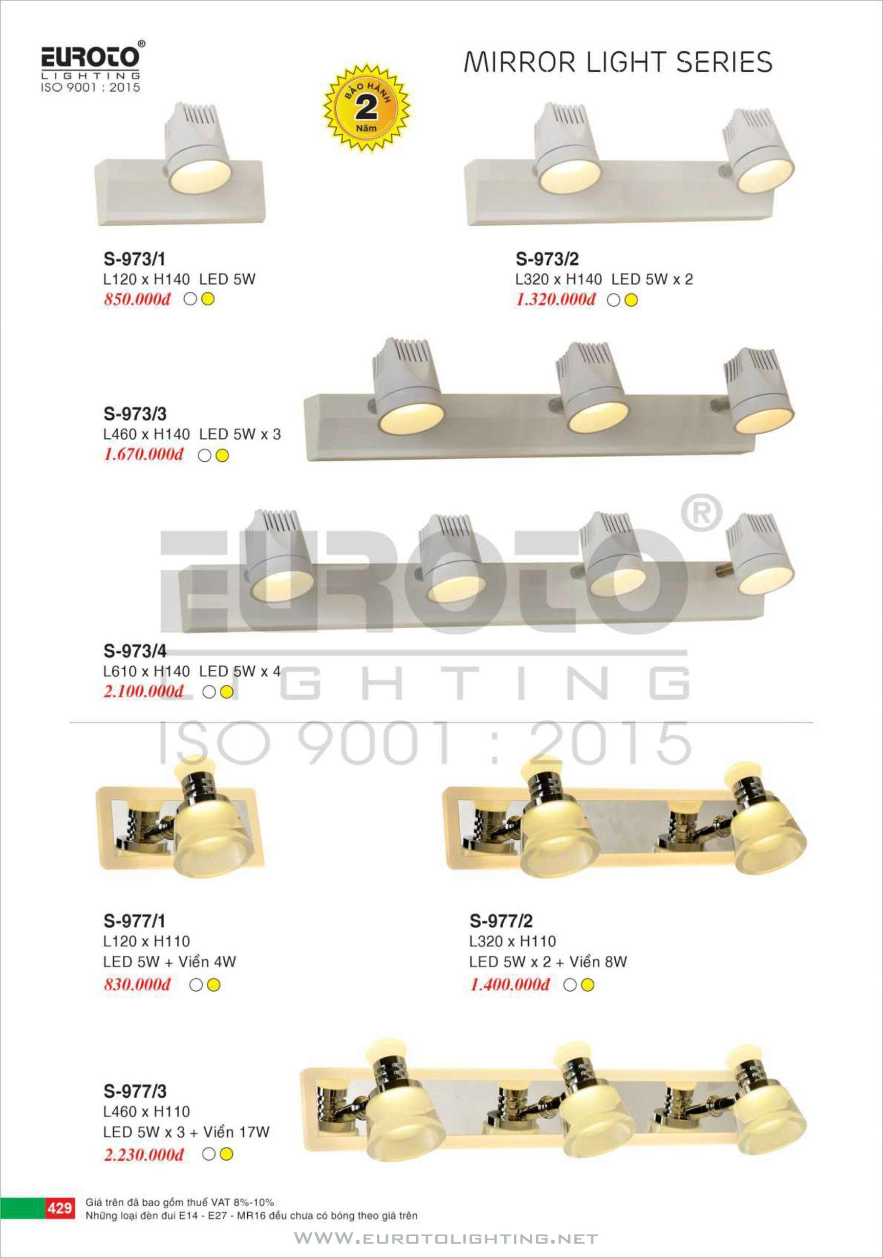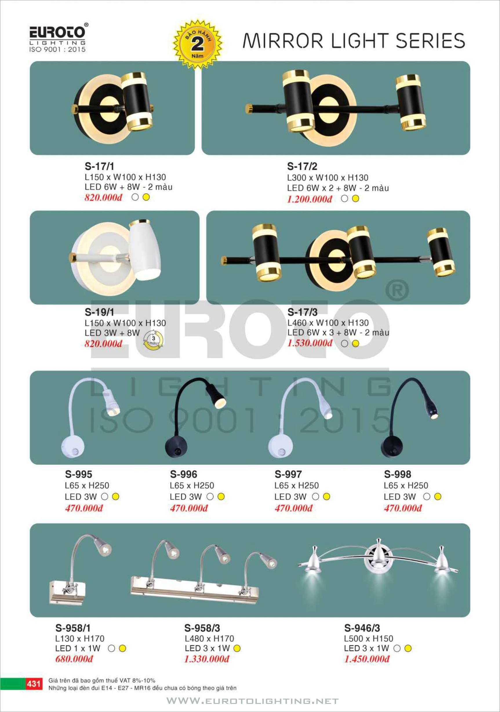 Catalogue đèn rọi tranh – rọi gương Euroto