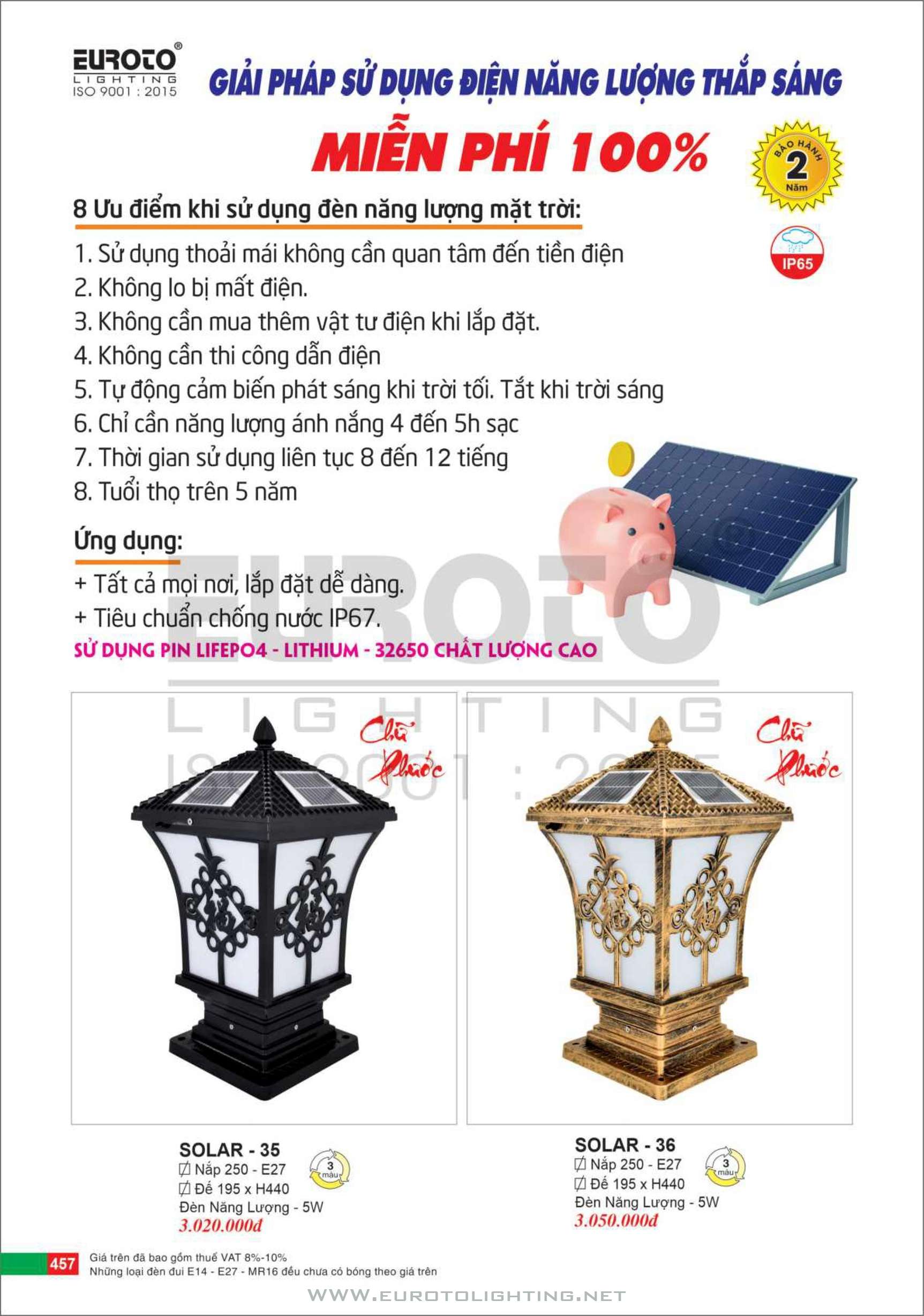 Đèn trụ sân vườn solar Euroto