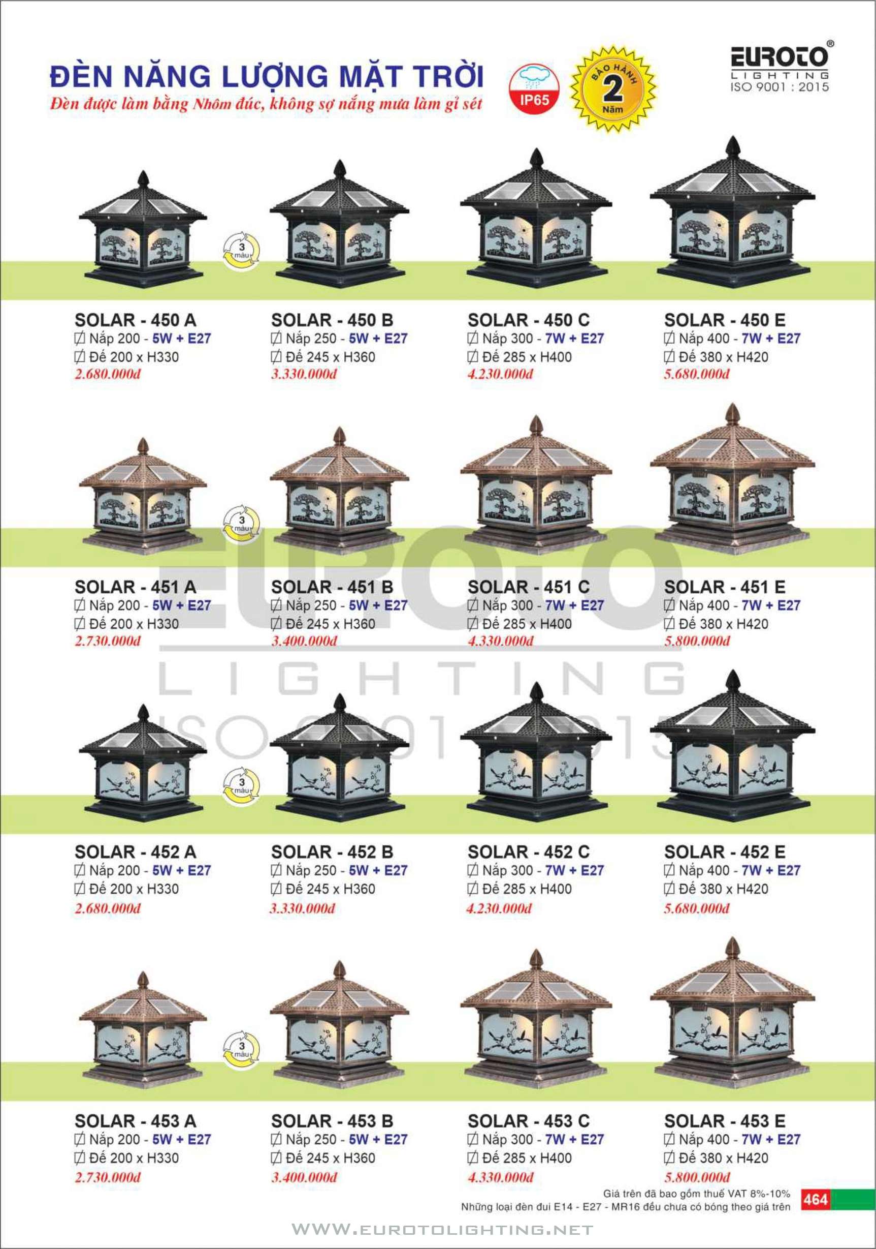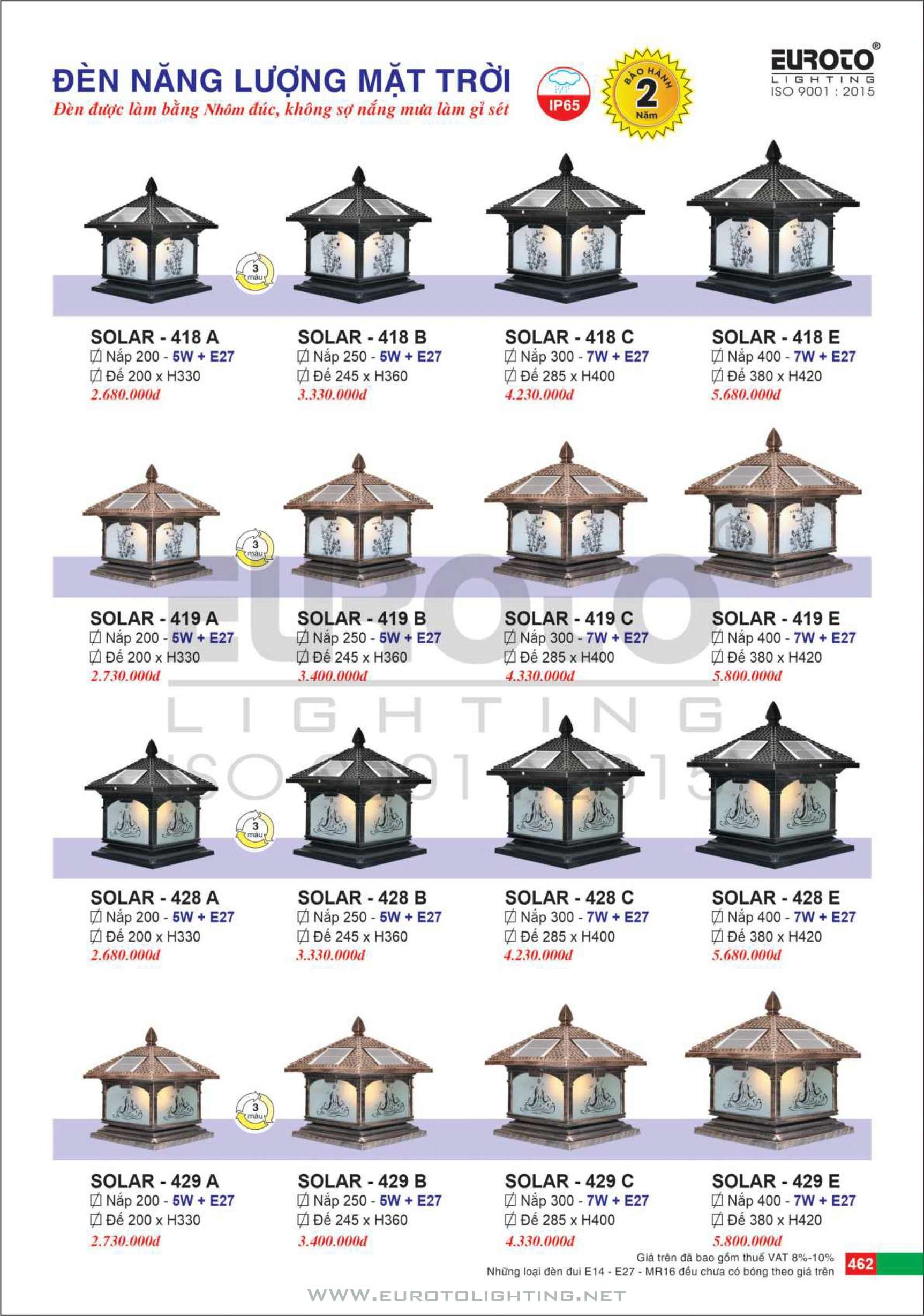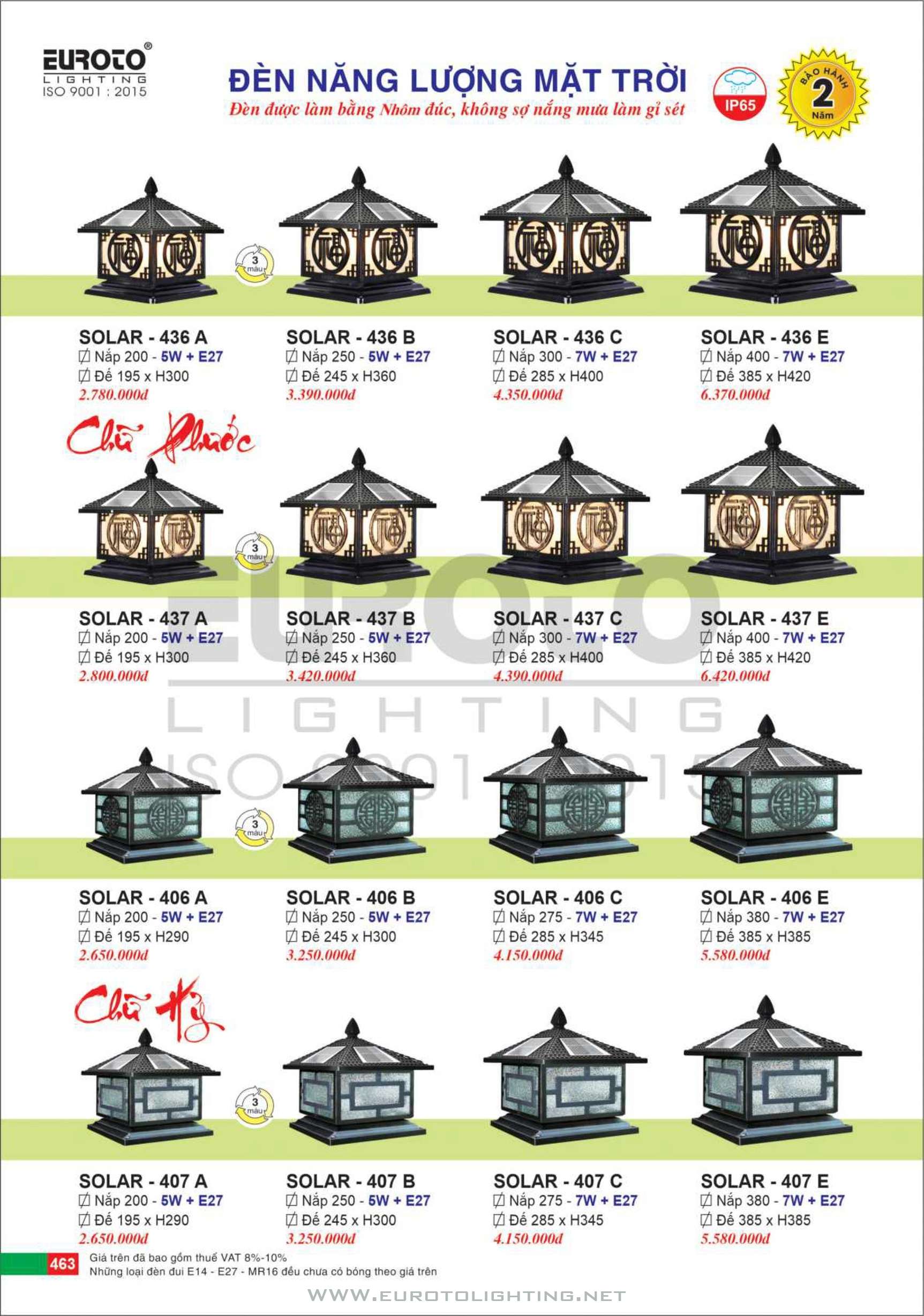 Đèn trụ cổng solar Euroto